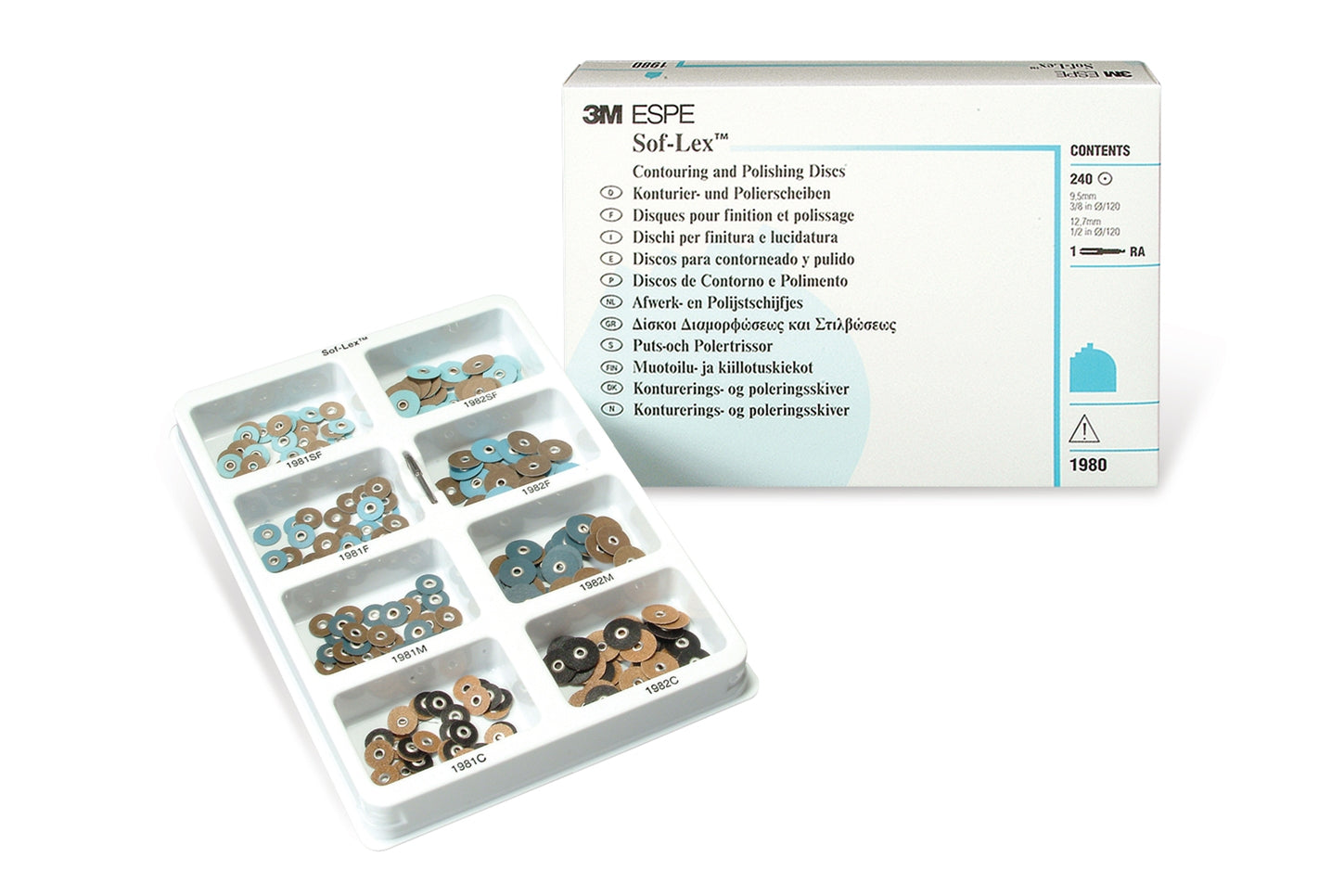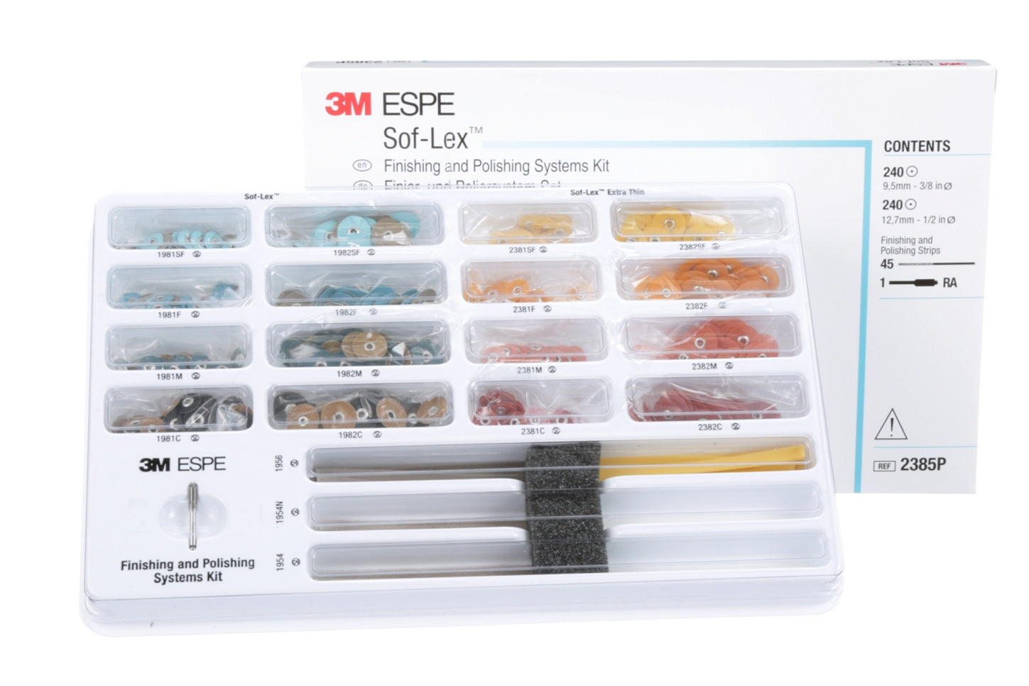 240 contouring and polishing discs + 240 extra-thin contouring and polishing discs+ 45 finishing and polishing strips + 1 RA mandrel |