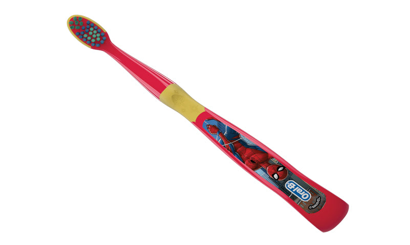- Pediatric toothbrush with Marvel Spiderman graphics