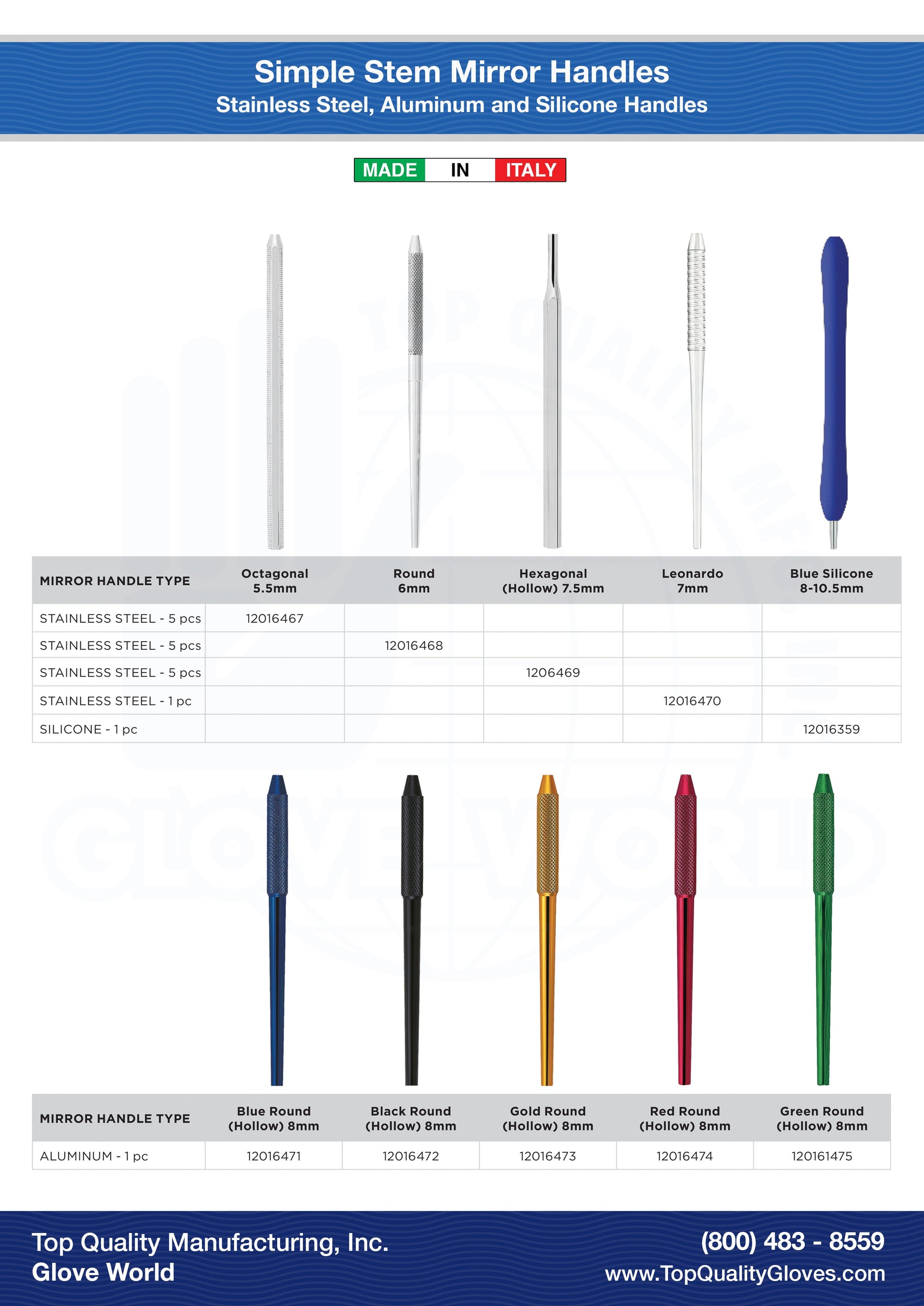 Simple Stem Mouth Mirror Handles - Round Stainless Steel, Aluminum - Blue, & Aluminum - Black - (Sale)